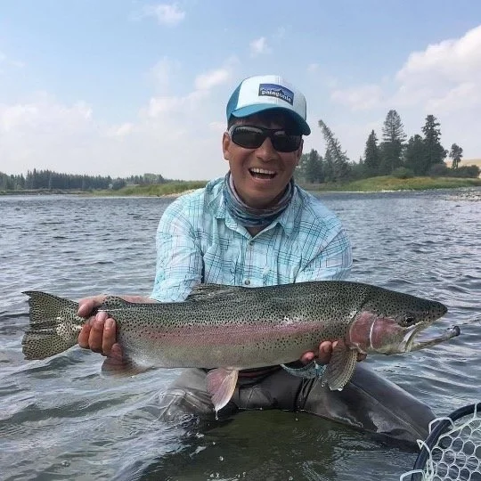 3) Any Favorite Fish your clients have caught or memories from your experience guiding? Summer of 2022, late July I was lucky enough to guide an excellent angler from Utah. On our first day fishing together we put a 24.5 inches kyped up male brown trout in the bag and that was closely followed by the largest guided brown I have had the pleasure of putting in the bag. A 26.5 inch female bow river brown trout was fooled with a dry dropper set up shortly after the first one. The fairly stout hook was opened up by the incredibly fat fish during the fight, and we were super fortunate to get the fish to hand. This particular brown looked like it had been eating birthday cake all summer; just an incredibly proportioned brown with hardly a scale missing. One of the ones. That first day led to 3 more trips with that particular client. In our 4 days of fishing together last season we managed 3 browns over the 24 inch mark, and a half dozen browns in the 21- 23 inch category. It's an absolute privilege to be able to help anglers make incredible memories like these each season. Even more its incredible to build relationships with like minded people as sick with fishing as I am.